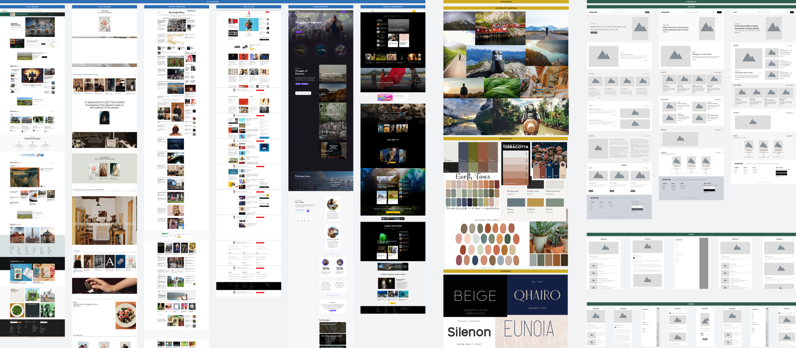 This workspace documents the early design explorations that helped define the visual direction, layout structure and editorial experience of Neverland.