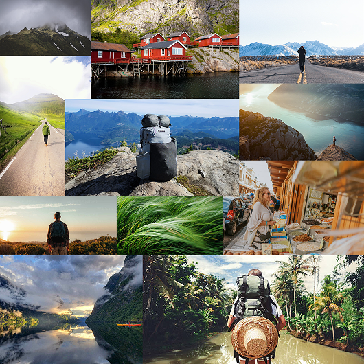 A flexible layout framework adaptable to different types of travel narratives and visual content